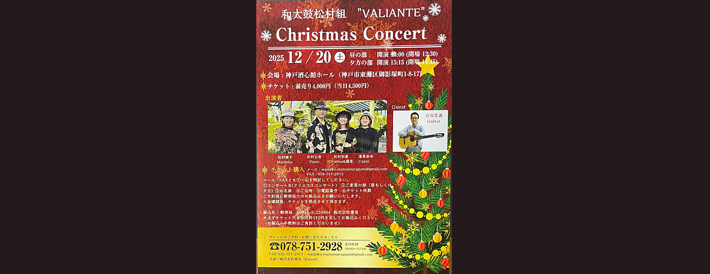 2025.12.20(土)「和太鼓松村組 VALIANTE Christmas Concert」