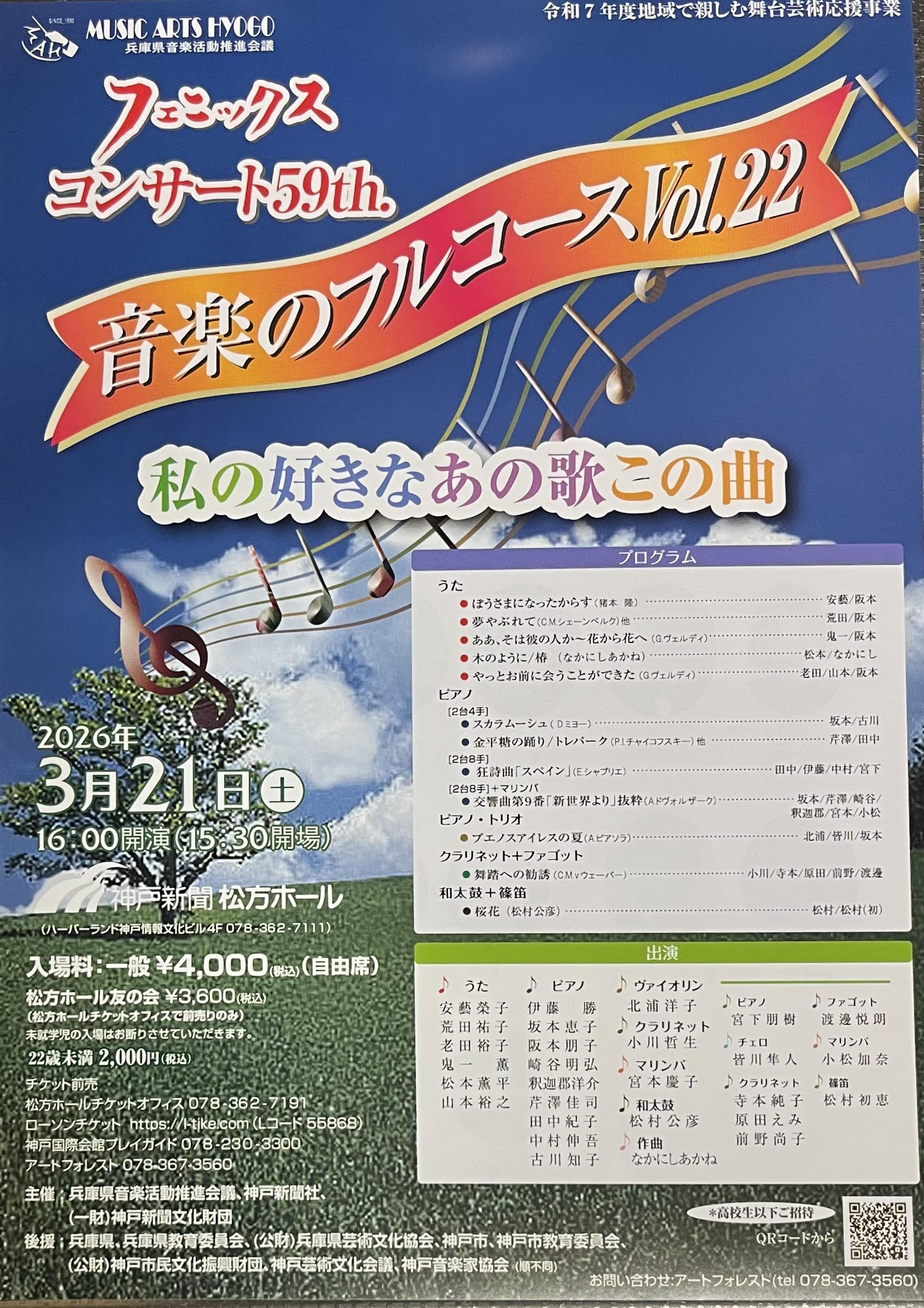 2026.3.21(土)「音楽のフルコースVOL.22」〜私の好きなあの歌あの曲〜